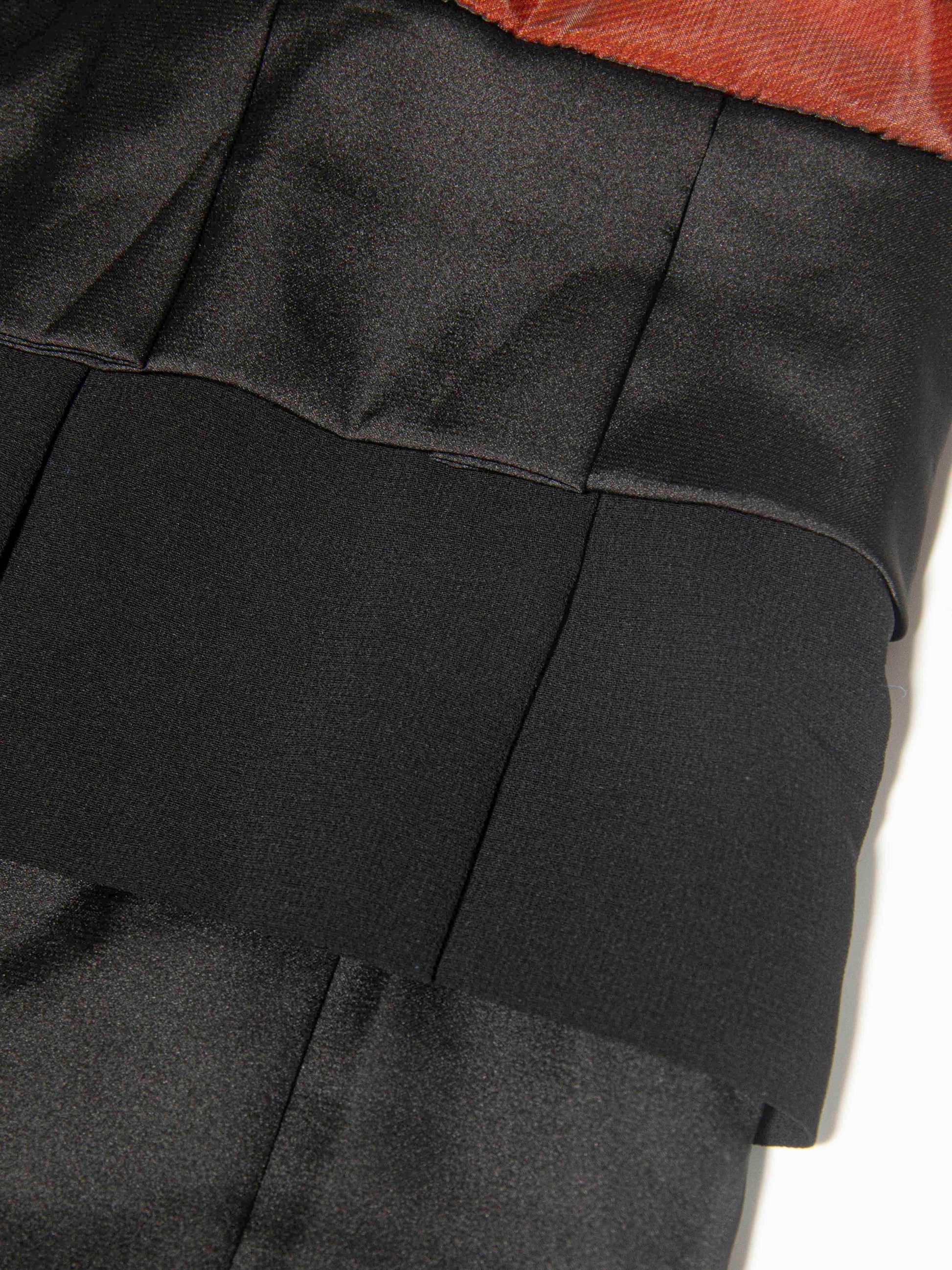 Waist: Defined waist seam with a contrast band to visually break the bodice and skirt