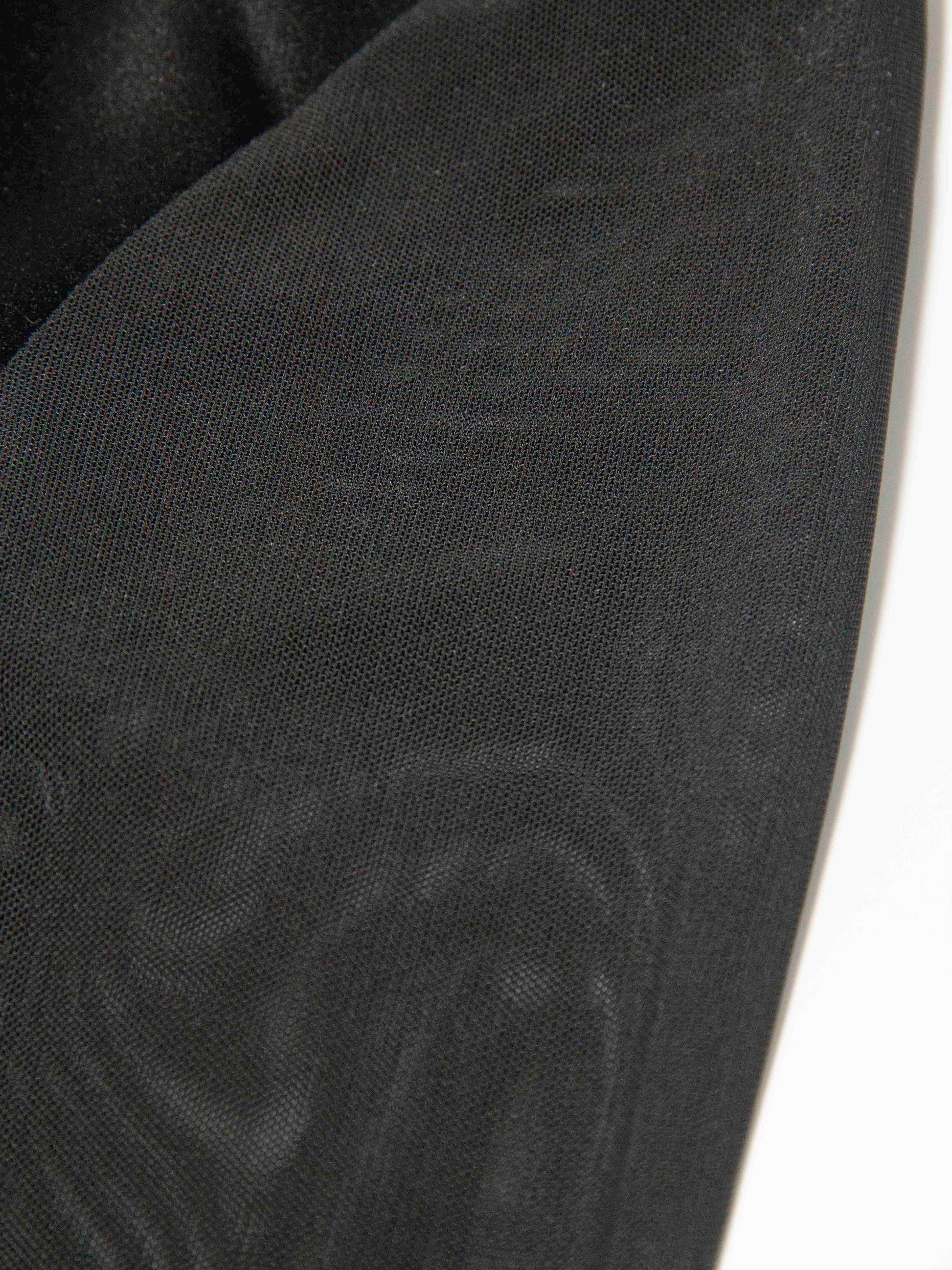 Sleeves: Sheer mesh long sleeves for soft, elegant coverage