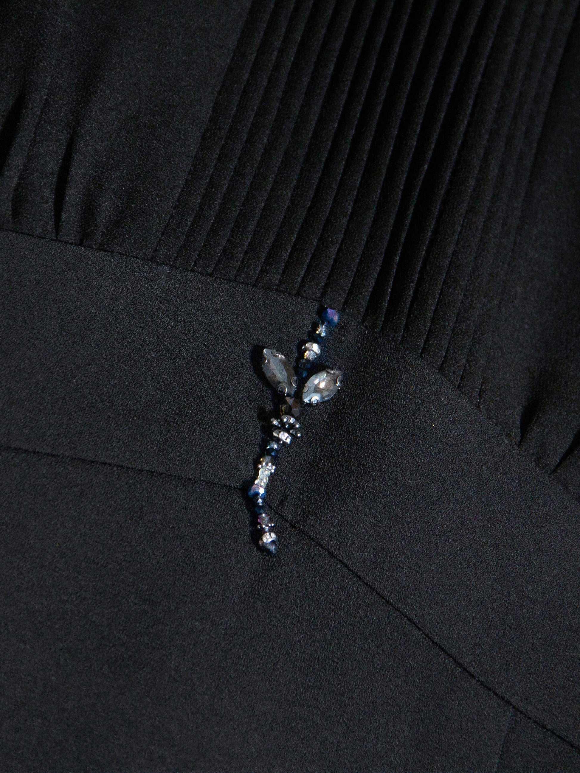 Pleated Bodice Detail: Adds texture and sophistication to the design.