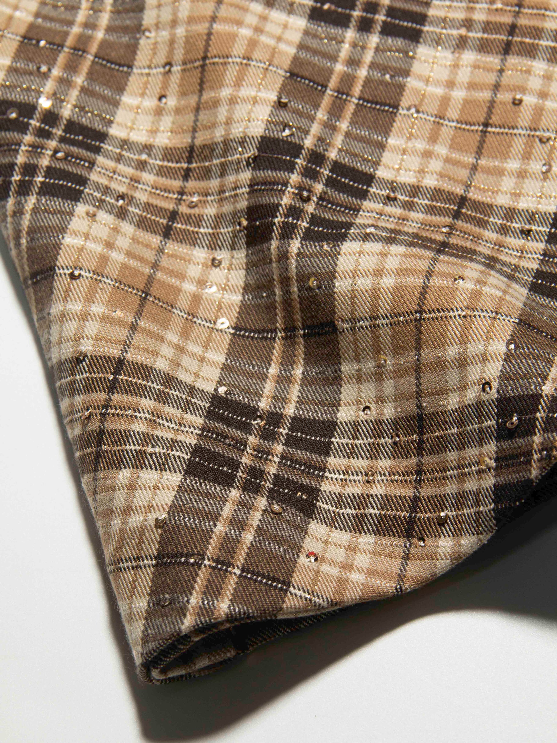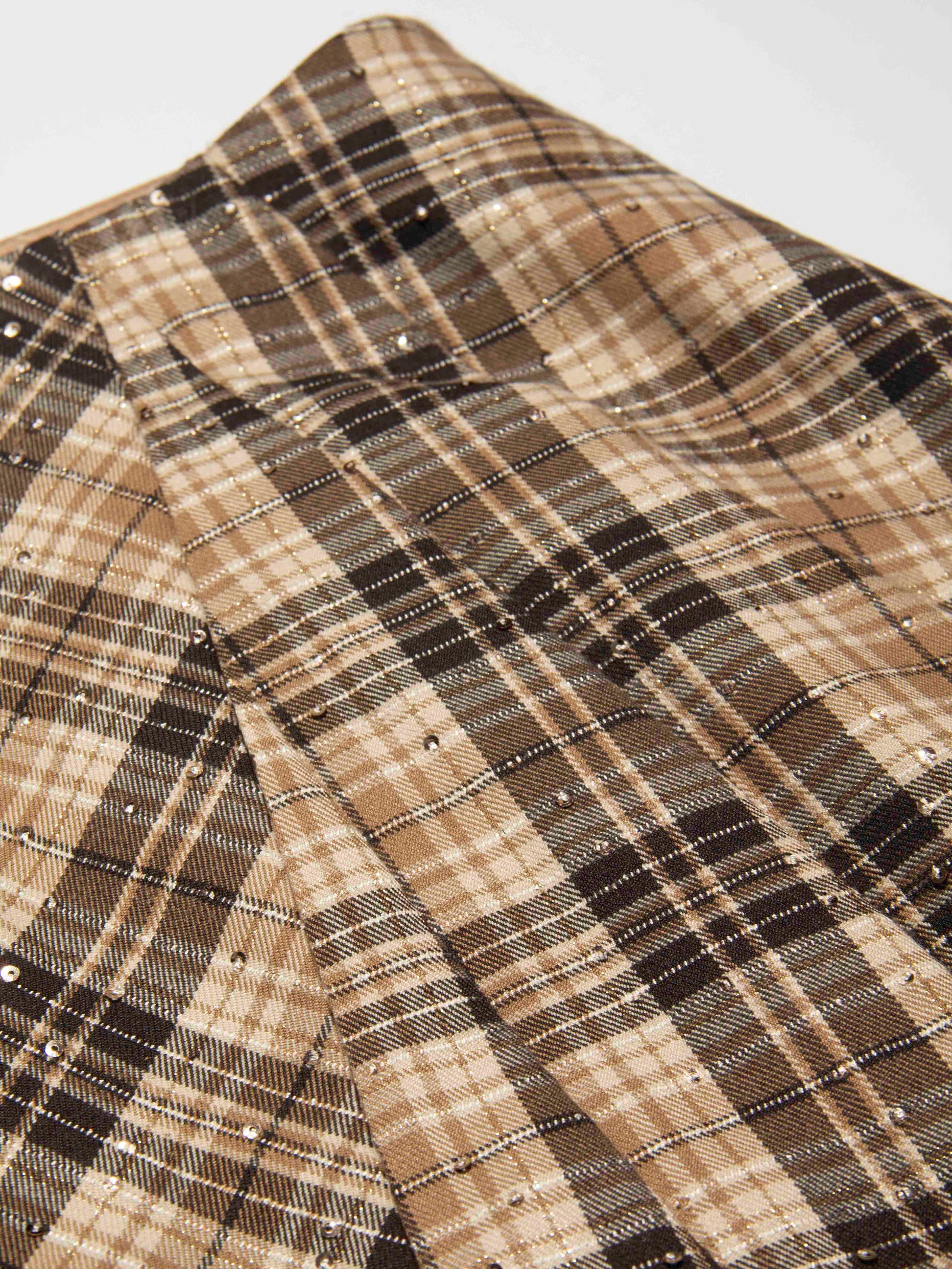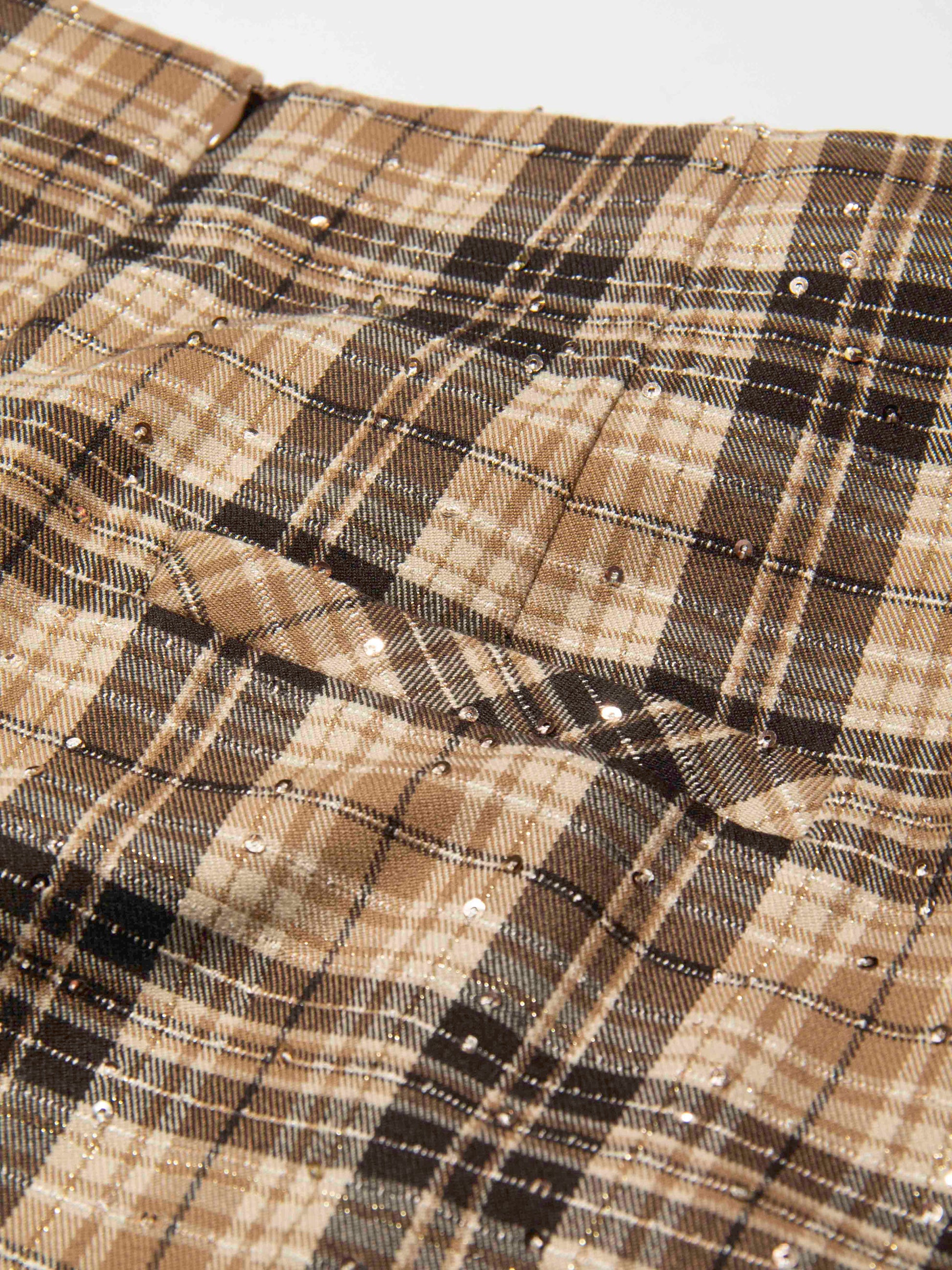 Brown Plaid Sequin Pleated Skirt