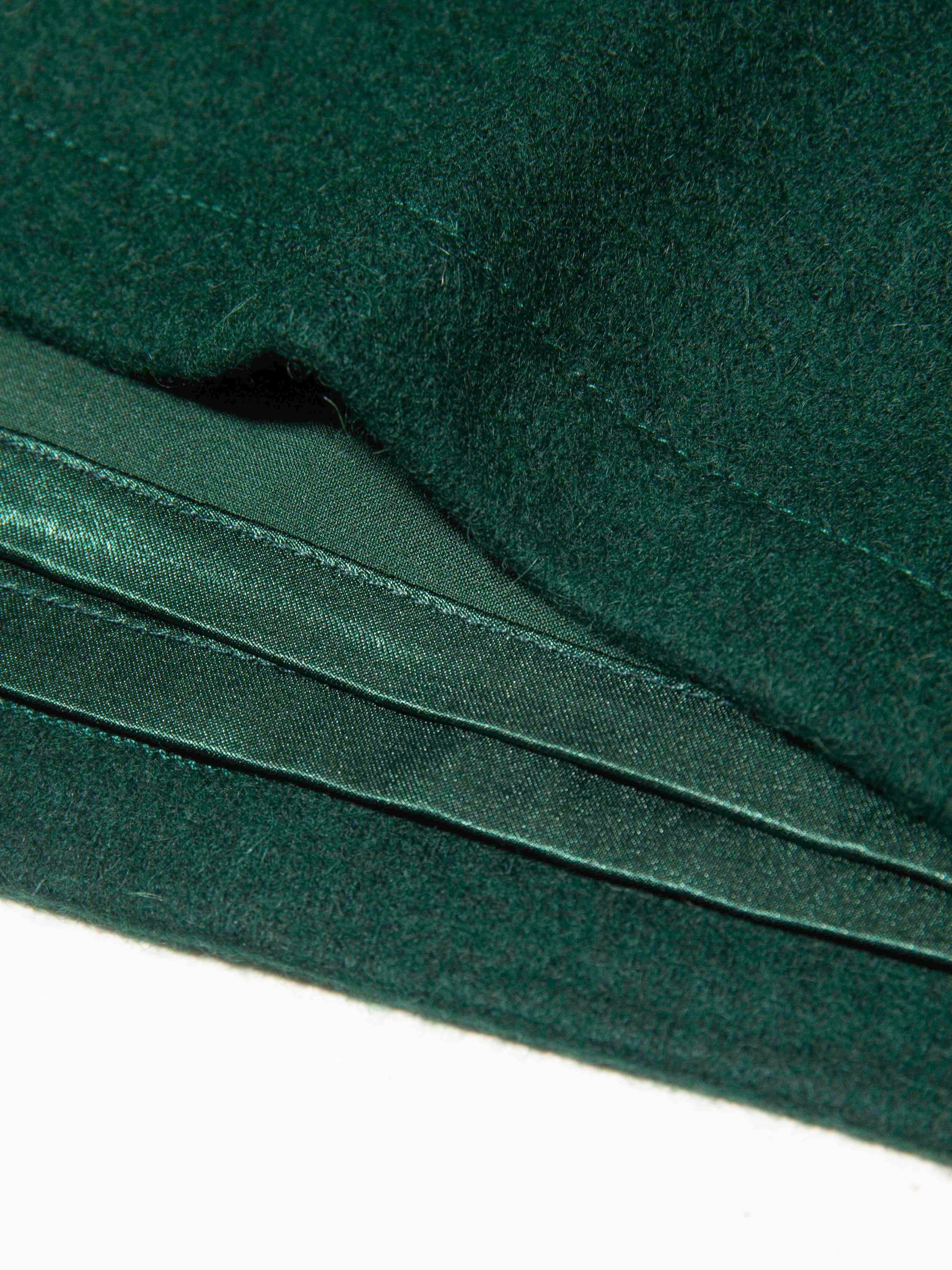 Details: Deep emerald green body with three horizontal black floral lace bands, solid black sleeves, and clean, minimal seams for a polished finish.
