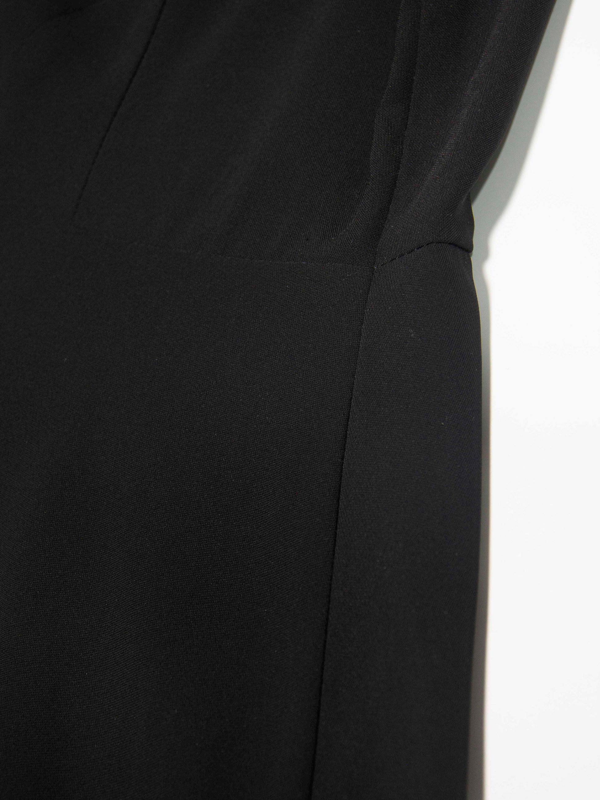 Sleeves: Sleeveless cut that keeps the arms free and gives the dress a modern, streamlined profile.