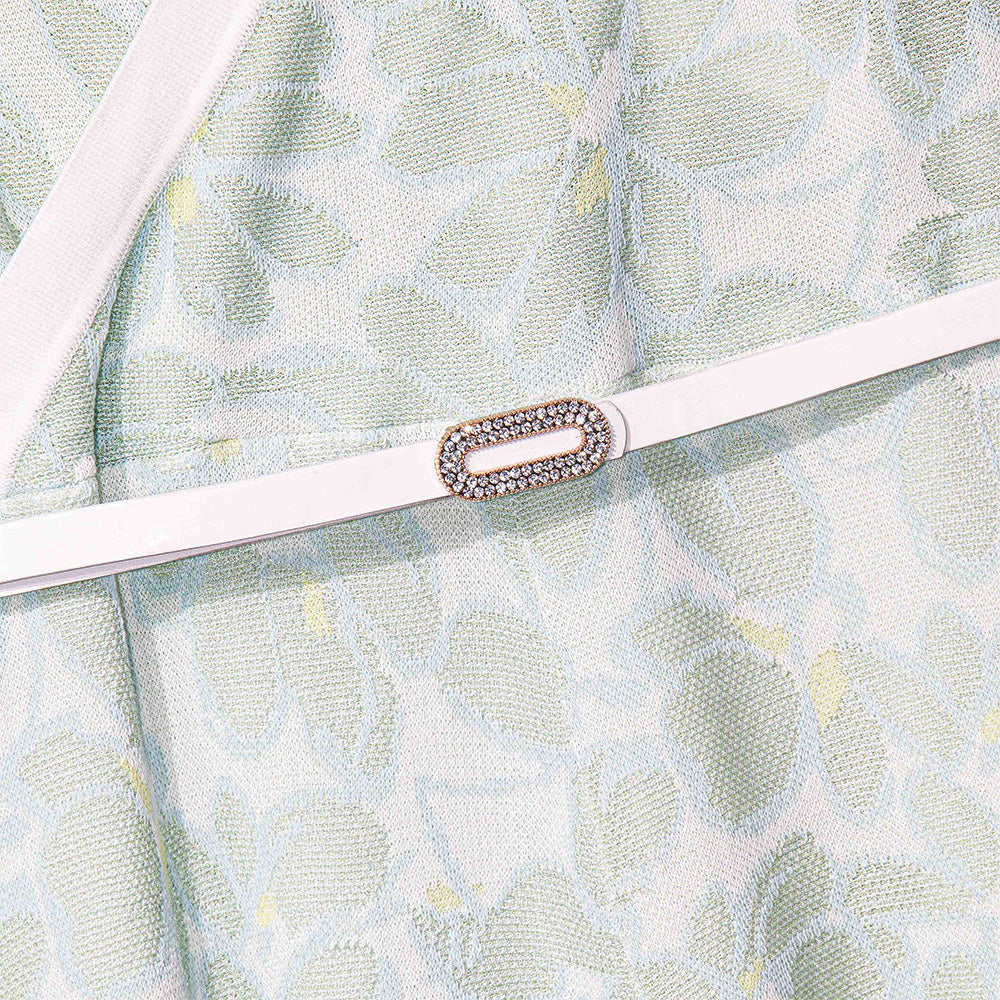 Knitted Floral Wrap Look Dress with Belt