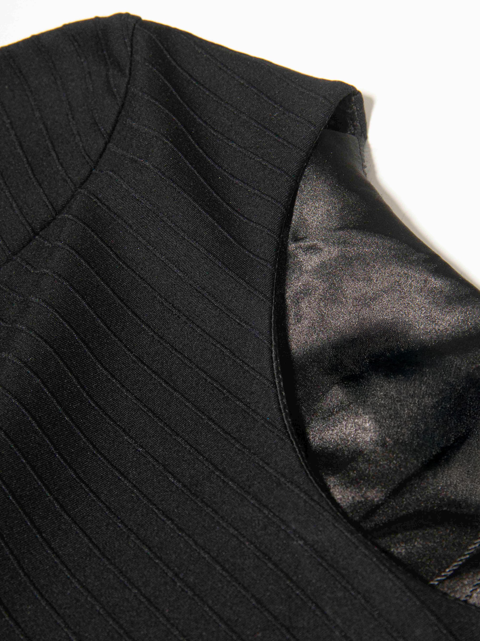 Details: Subtle ribbed texture through the bodice and skirt with soft movement at the hem for a feminine finish.