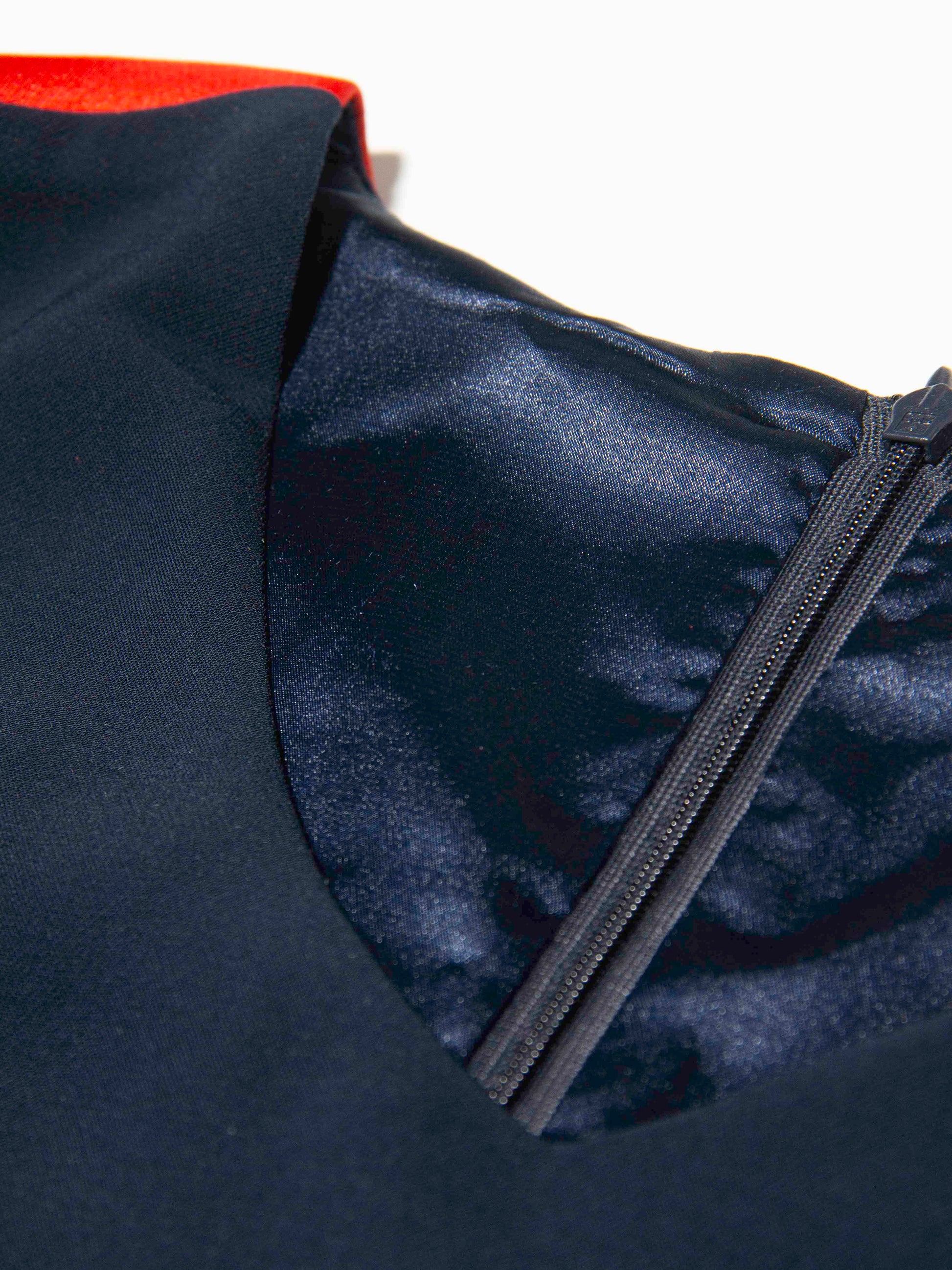 Style: Long-sleeve mini sheath dress with sporty contrast side stripes