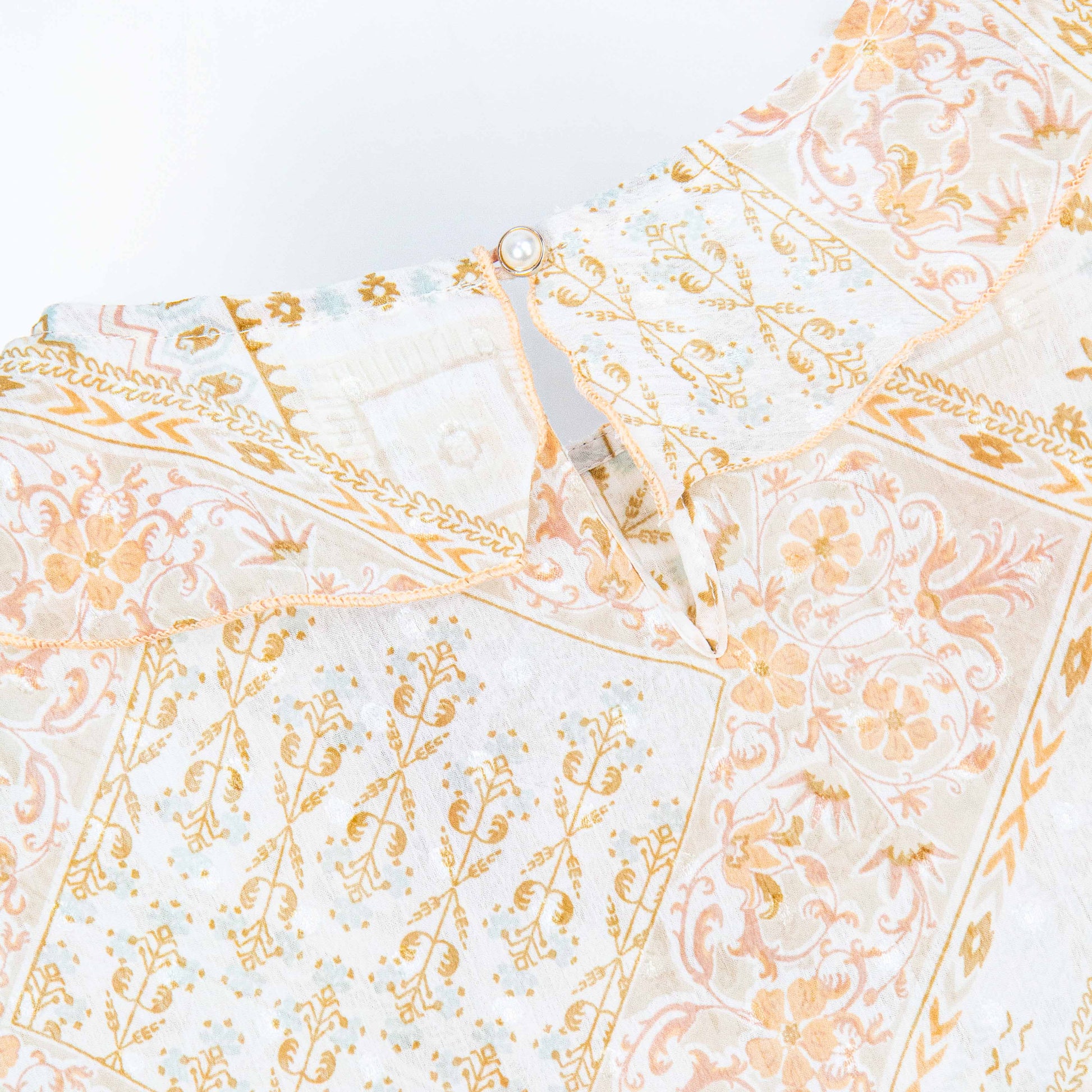 Muted Floral and Geometric Print: Delicate patterns in soft beige and earthy tones for a timeless look.