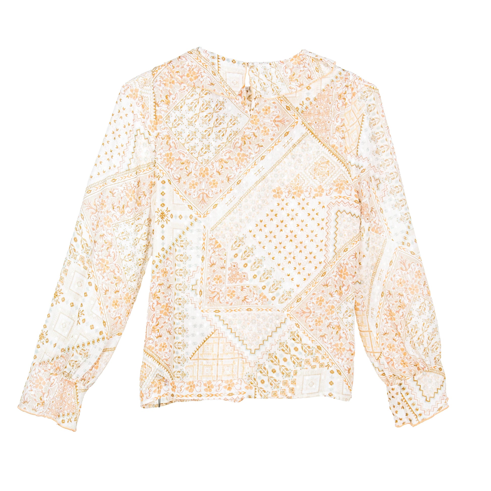 Long Sleeves with Elasticated Cuffs: Tailored cuffs enhance the blouse’s graceful silhouette.