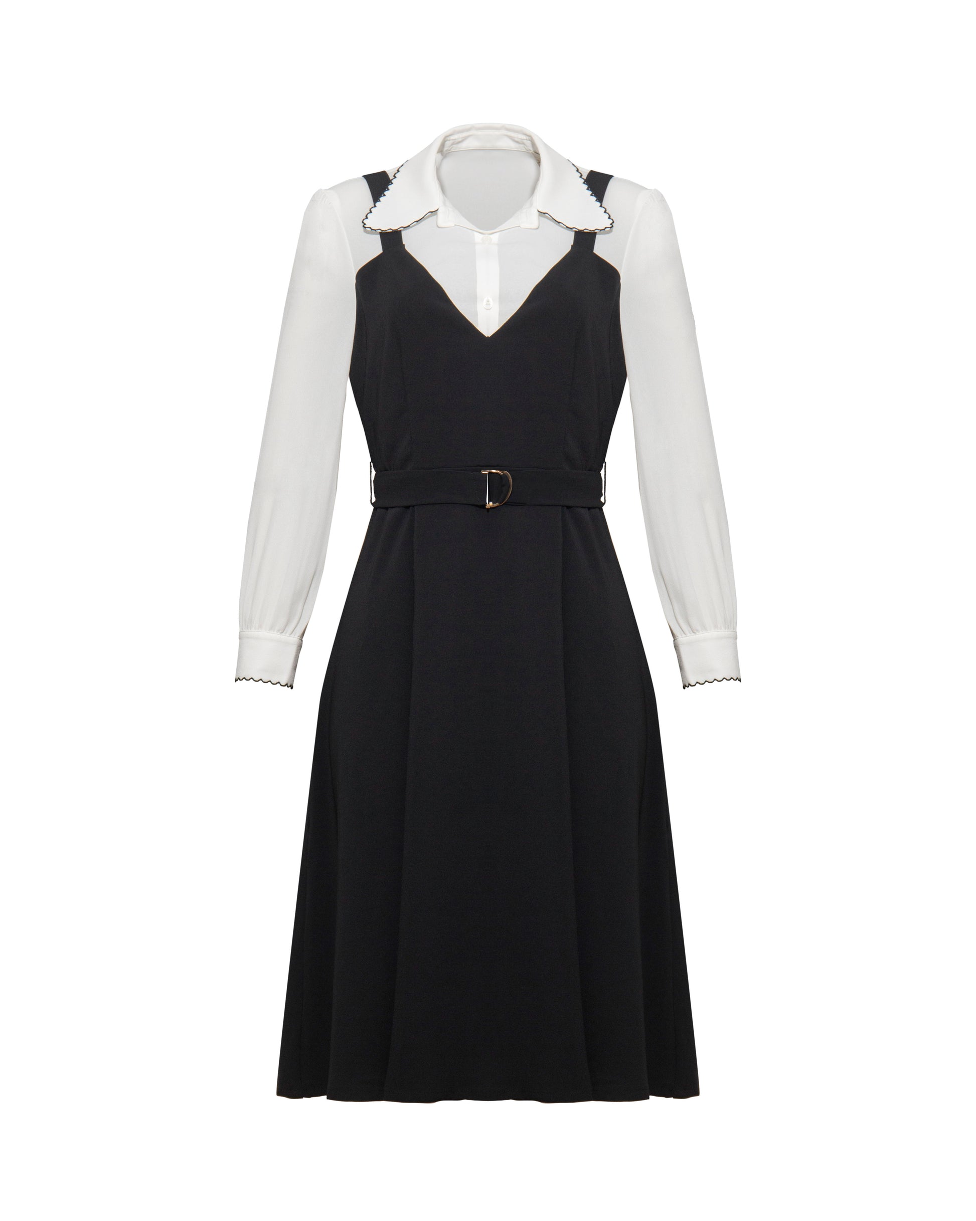 Two-Piece Look: Combines the style of a blouse and dress in one polished piece.